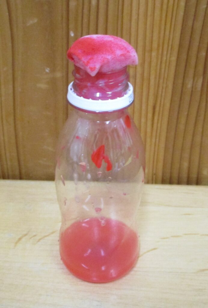 1.R1ヨーグルトの容器に、絵の具と水を入れる。(水は少量で大丈夫です)