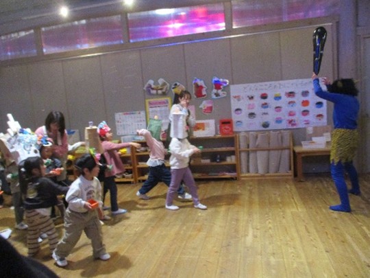 豆まきの後には、みんなで「鬼のパンツ♪」を楽しく踊りました。