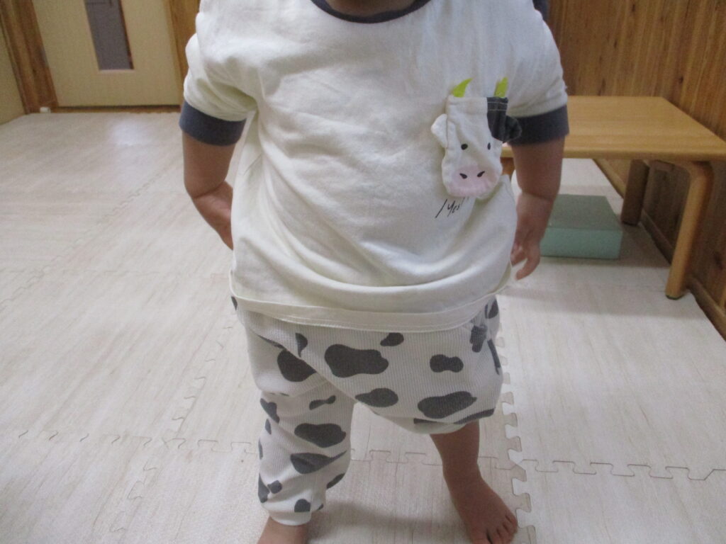 以前は、パンツやズボンのはき方が分からず「って~(てつだって)」と言っていた子どもも、